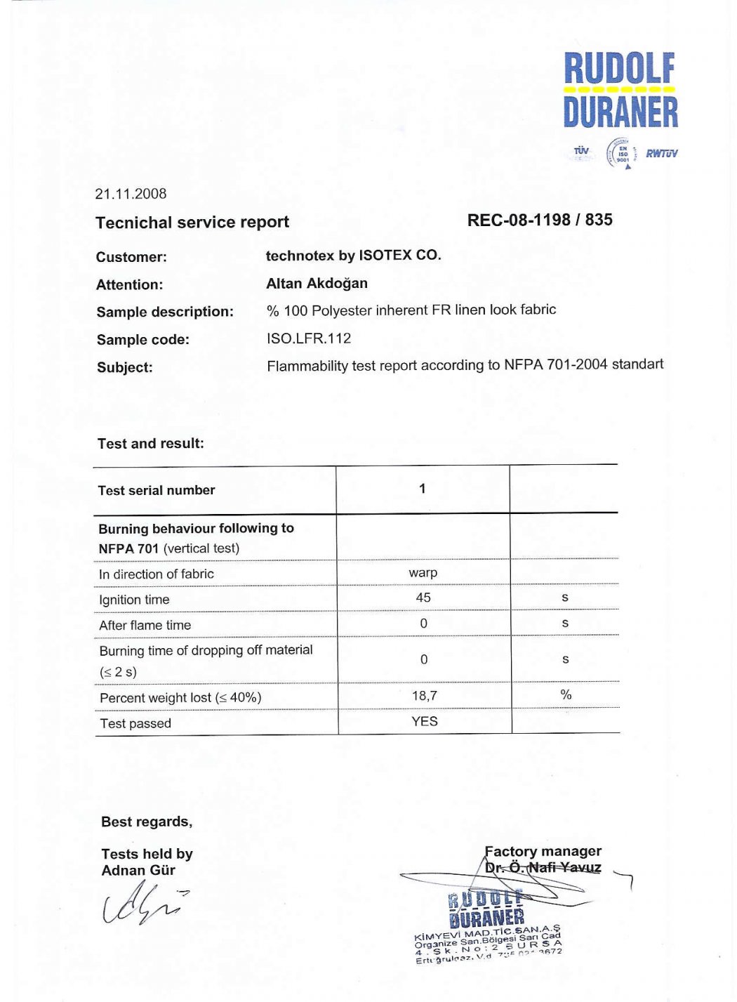 Sertifikalar ve Testler